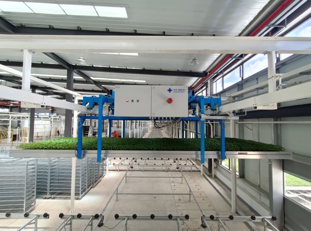 空中运输系统可实现跨区域、远距离快速搬运,通常与地面运输相结合,构成空间内三维运输系统。配合其他装备完成栽培床供应、空床堆垛、裁培床清洗等多项工作。