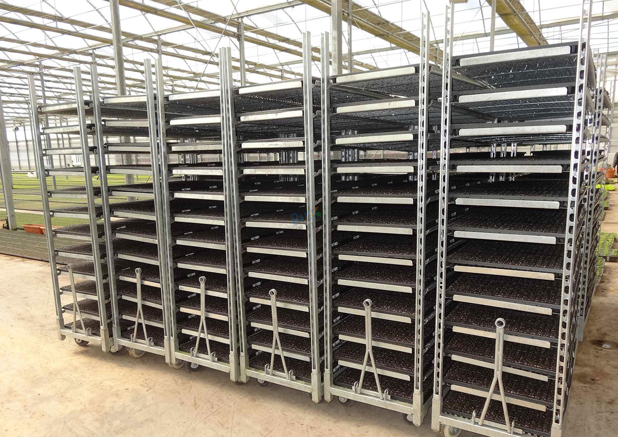 这款由热镀锌钢立柱配多层压制高强度胶合板的推车,其隔板可以安装多层,进行人工运输各种花盆、托盘、穴盘等容器或盆花、穴盘苗等时的物美价廉之选,是一款多用途运输车。