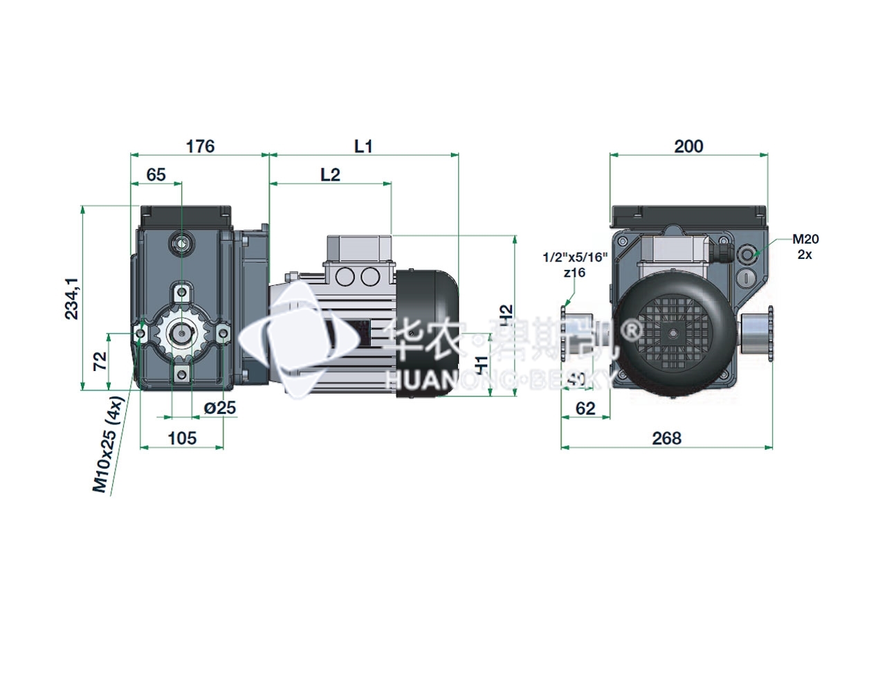 | 编号 | 型号 | m (kg) | L1 (mm) | >L2 (mm) | H1 (mm) | H2 (mm) | 扭矩 (Nm) | 转速 (R/min) | 功率 (kW) | 电压50HZ (V) |