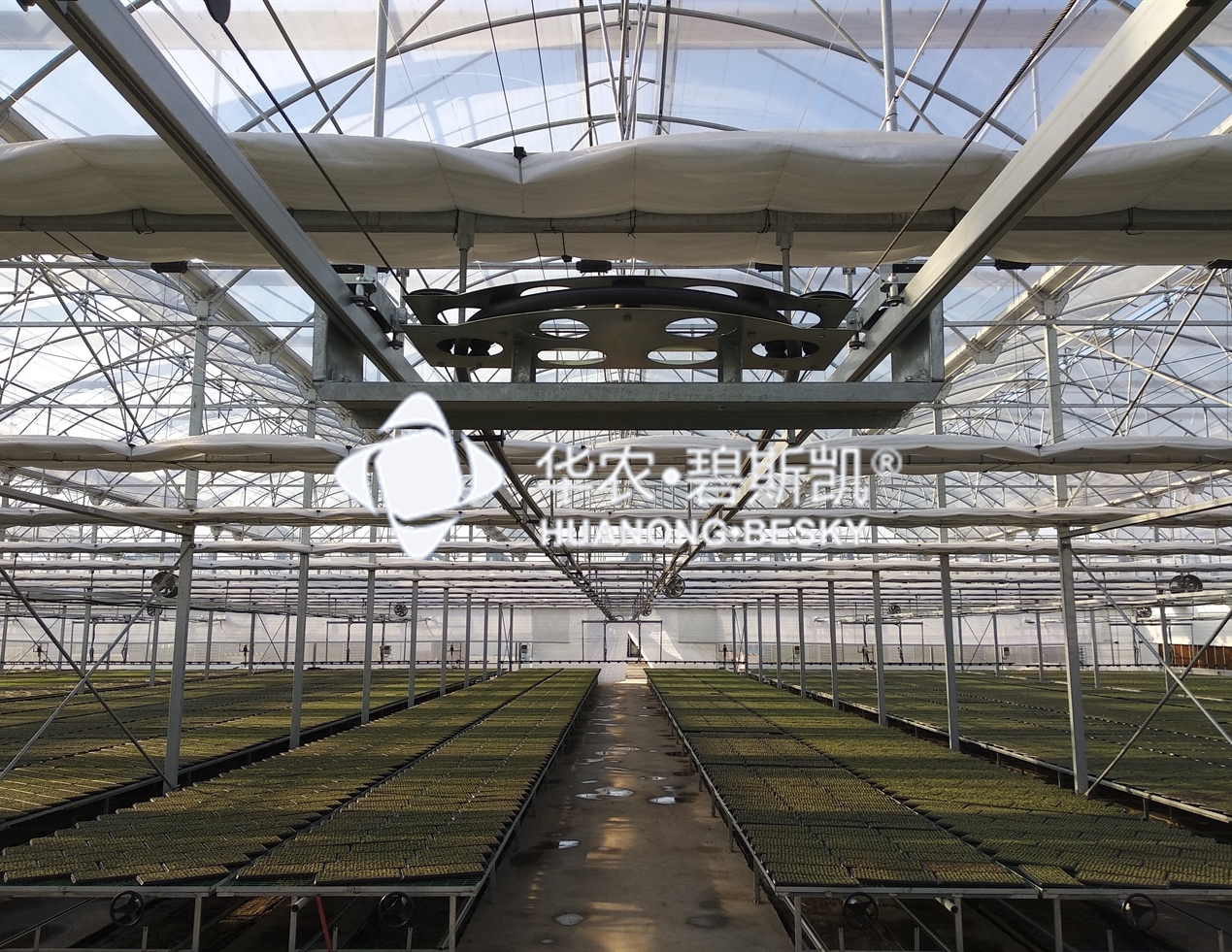适用范围:温室跨度在12米以内,一跨一台,不做跨间转移