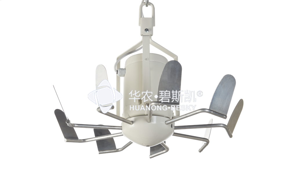 吸入温室内幕布上方干燥的空气并通过输出盘将空气水平分散并充分混合。
